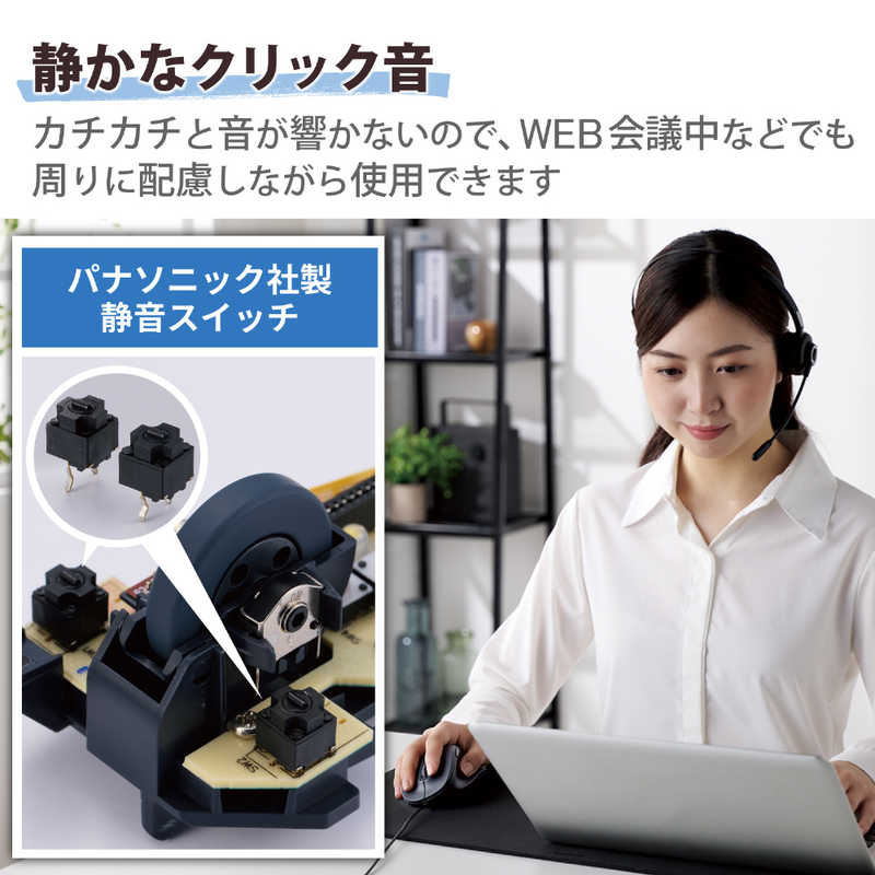 左右ボタンには、パナソニック株式会社が開発した静音スイッチを採用。クリック感と耐久性を損なわず、高い静音性を実現しました。
