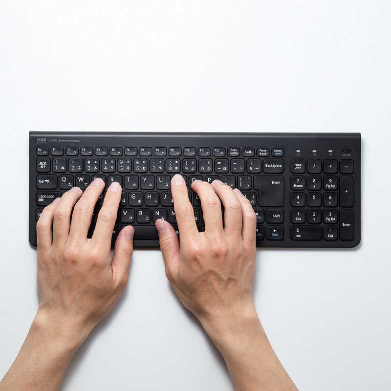 ●ノートパソコンと同じパンタグラフキー方式を採用しています。キーの形状はアイソレーションタイプで爪の引っ掛かりを軽減します。