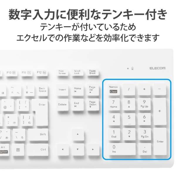 ●数字入力に便利なテンキー付きで、エクセルでの作業などを効率化できます。