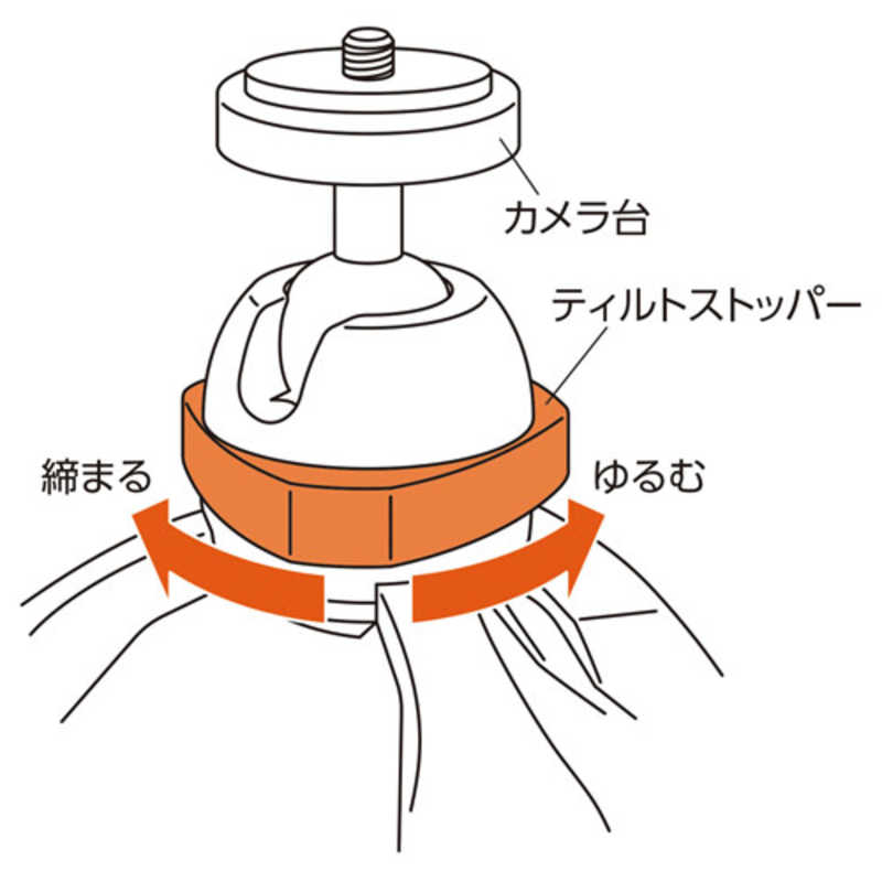 ●簡単操作でアングルが自在に変えられる自由雲台は、縦位置撮影にも対応しています。