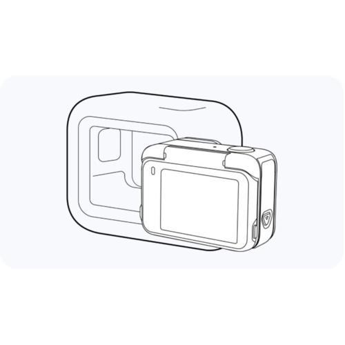 ●フロートガードの背面(Insta360ロゴの無い方)をカメラのタッチスクリーンに合わせます。