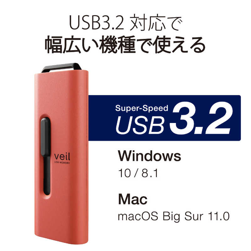 エレコム ELECOM エレコム スライド式USB3-2(Gen1)メモリ レッド 容量:64GB MF-SLU3064GRD