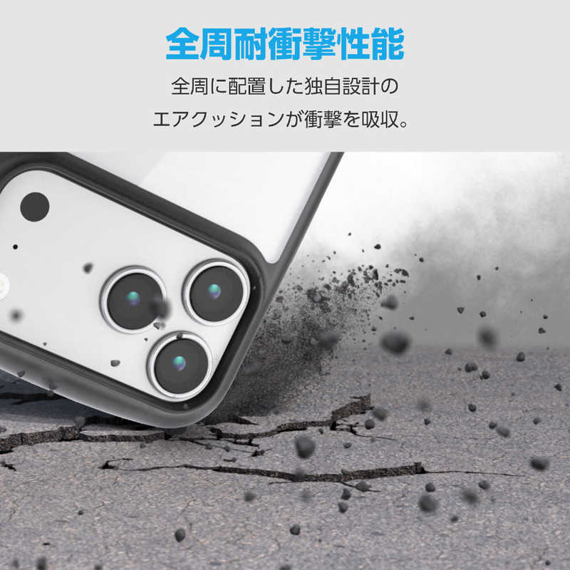 ●全周に配置した独自設計のエアークッションが衝撃を吸収し、背面には高硬度のポリカーボネートを採用した、TOUGH SLIM LITEケースです。