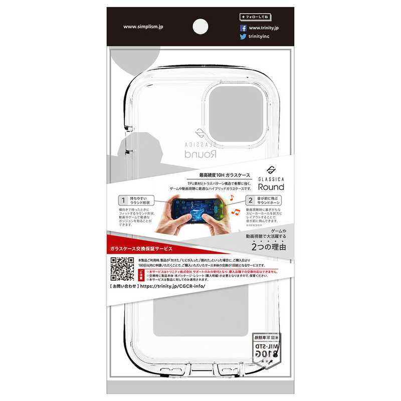 トリニティ iPhone 14 6.1インチ 耐衝撃背面ガラスケース クリア TR-IP22M2-CGCR-CCCL
