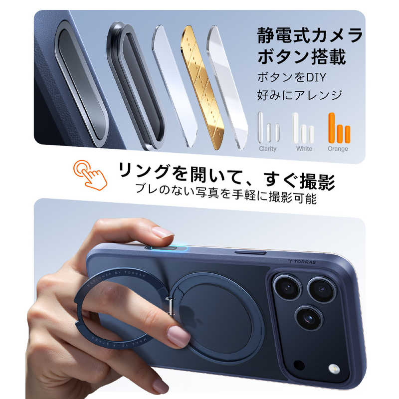 トラス TORRAS iPhone17 Pro用複合素材PC+TPUケース TORRAS OSTAND PRO ミドナイトブルー X00FX2927