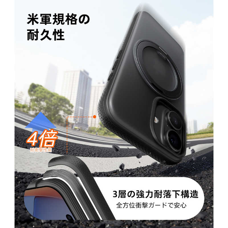 ・アップグレードされた360°回転式キックスタンドでお好きな角度でスマートフォンを支えることができます。