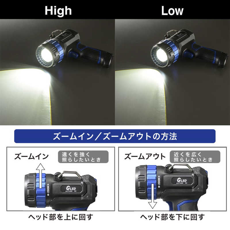 ● 照度:※ズームイン・満充電時の場合High…0.5m/約220000ルクス、1m/約100000ルクス、10m/約1300ルクスLow0.5m/約89000ルクス、1m/約38000ルクス、10m/約500ルクス【ご注意】