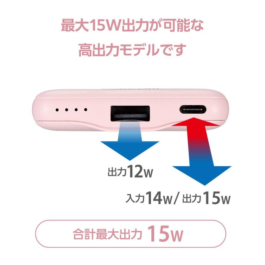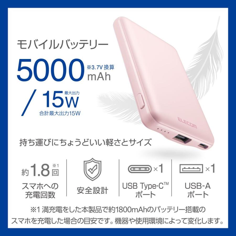 エコレム ELECOM 薄型コンパクトモバイルバッテリー(5000mAh/3A/C×1+A×1) ピンク DE-C45-5000PN