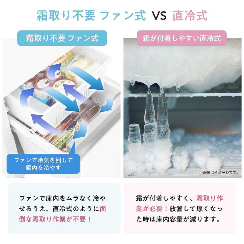 ・ファン式冷却なので、霜取りの手間がかからず、庫内をすばやく冷やすことができます。