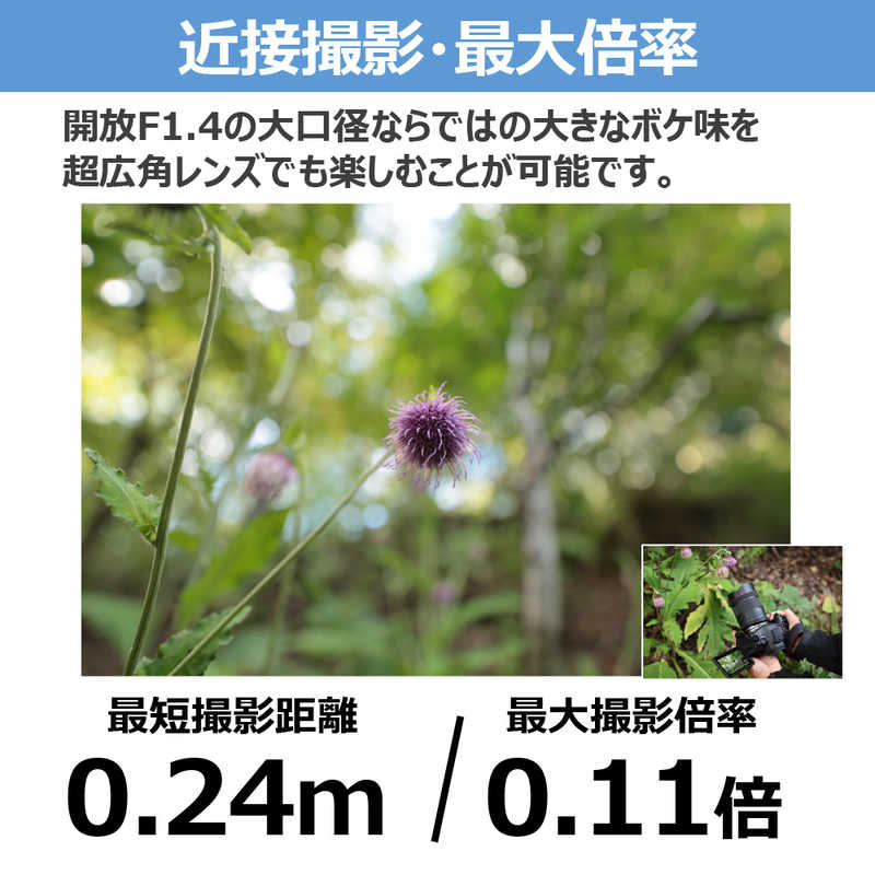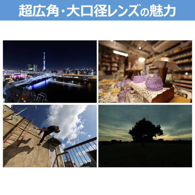 ●焦点距離14mmの単焦点レンズにおいてキヤノン初となる開放F値1.4を実現することで、柔らかなボケ味と広大な画角が空間の広がりと被写体の存在感を同時に表現。