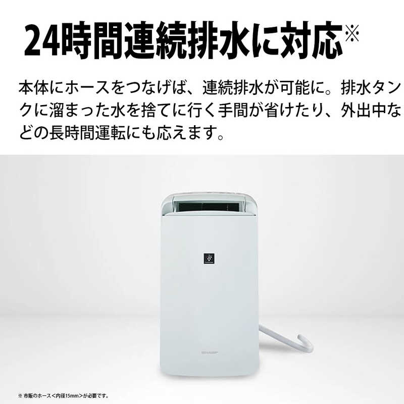 ●24時間連続排水も本体にホースをつなげば、連続排水が可能に。長時間運転にも応えます。