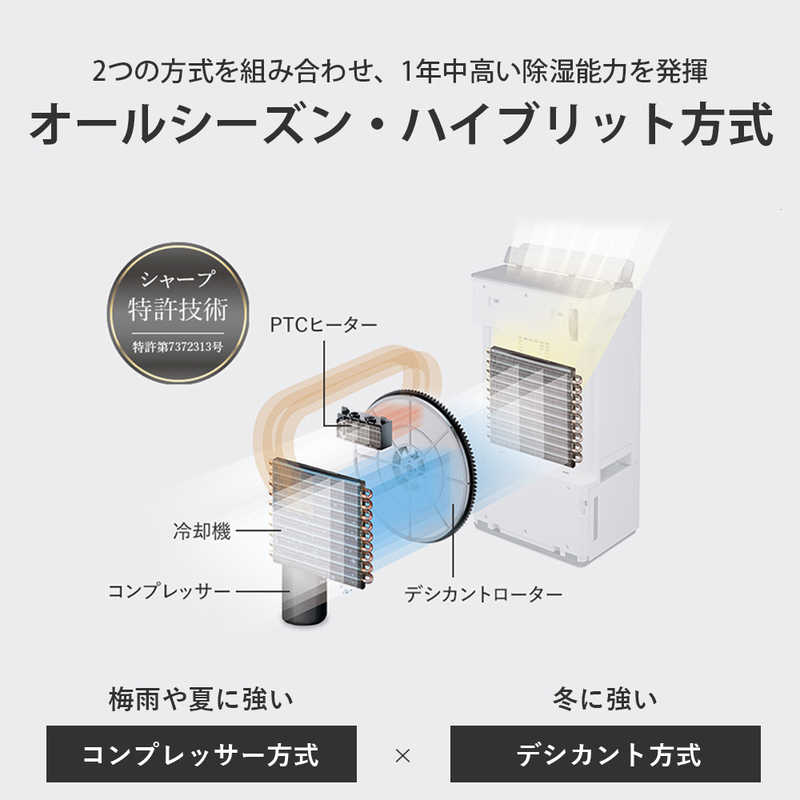 ●1年中パワフル除湿が出来るハイブリッド方式。