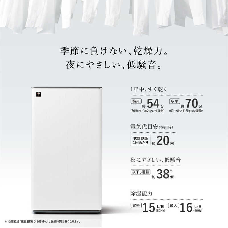 ●除湿能力:[50Hz] 14L/日、[60Hz] 16L/日