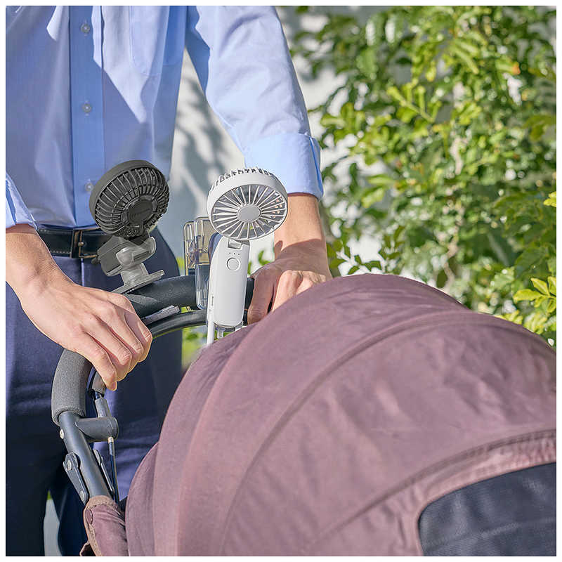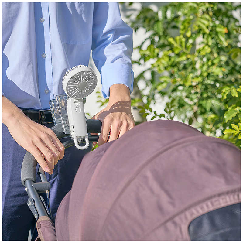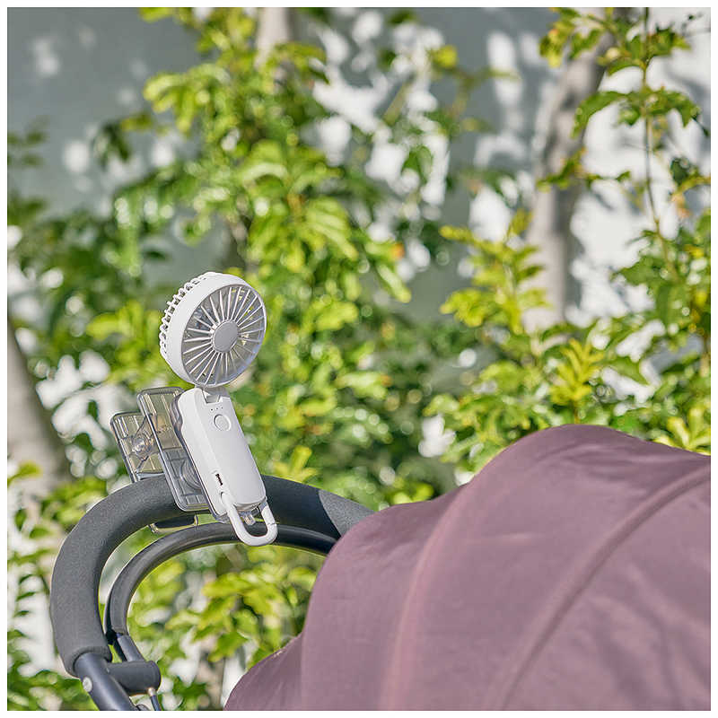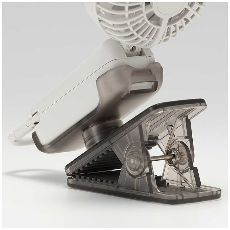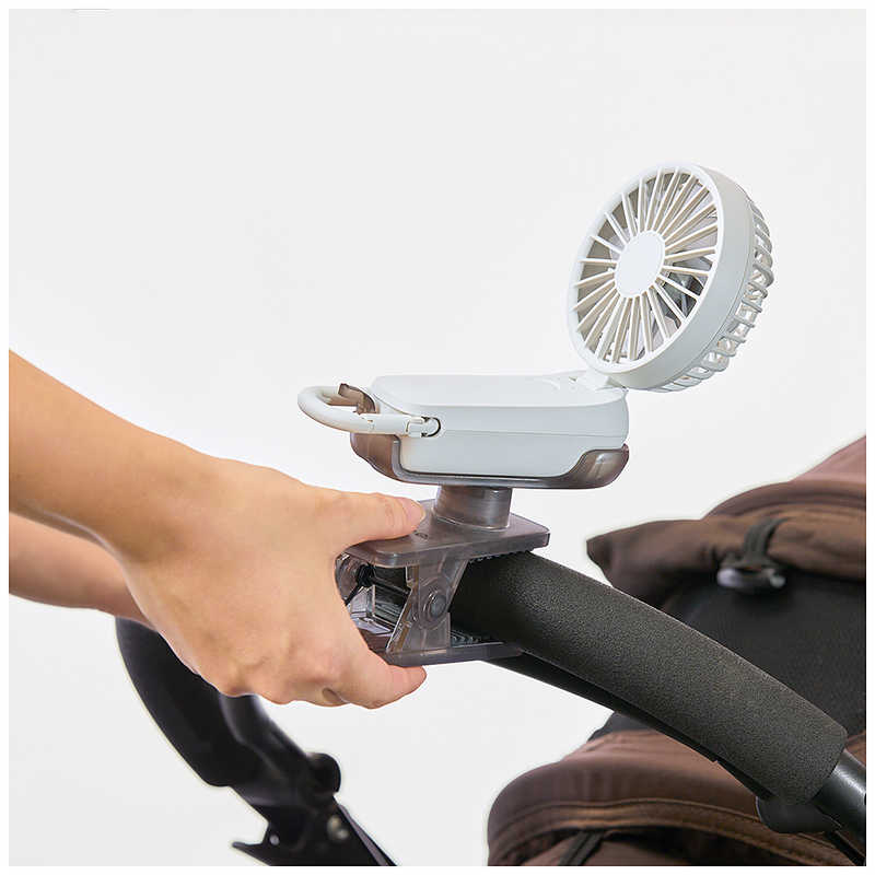 ●大きなクリップでベビーカーなどに固定し、回転するので方向を変えられます。